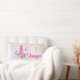 A cute personalised pillow with a name in a girly handwritten font. Designed with a trendy pink unicorn. Adorned with a fancy floral headpiece. Whimsical butterflies flying around. Fake gold confetti sprinkled along the top. A pale purple and yellow watercolor background.