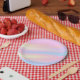 Trendy Unique pastel Pink Blue abstract waves Paper Plate