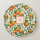 Brighten up any room with this personalised round throw pillow featuring vibrant Valencia oranges, lush green leaves, and soft cream flowers, all arranged in an elegant, nature-inspired design. The monogram in the centre makes this pillow a unique and thoughtful addition to your home décor, perfect for any season or occasion. Made from soft brushed polyester, this round pillow adds both comfort and style to your living space, making it an ideal decorative piece for beds, couches, or chairs.