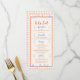 Trendy Italian style Menu that is easy to personalise. With whimsy typography and hand drawn element details. On an orange gingham background with blue details.