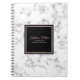 This elegant business themed notebook features a chic faux rose gold frame and lettering on black bordered by white marble. Personalise with your own name and profession. Designed by artist © Susan Coffey.