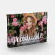 Acrylic photo block graduation keepsake featuring your favourite photo, your name, Class of and Graduate in chic white lettering. Perfect for yourself or as a gift to parents and grandparents.