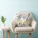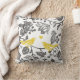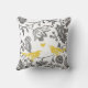 Trendy Yellow Grey and White Floral Bird Pattern Cushion
