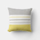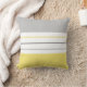 Modern throw pillow features a simple striped design in trendy colours - pale yellow, light grey, and white.