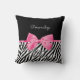 Trendy Zebra Print Chic Hot Pink Bow and Name Cushion