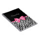 A trendy black and white zebra print notebook decorated with a picture of a chic hot pink ribbon tied into a girly bow. Personalise this fashionable pink and black animal print design by adding the name of your favourite girl. Flat printed image, NOT actual bow.