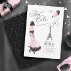 Celebrate in true Parisian style with this Très Chic Sweet 16 birthday invitation. Featuring an elegant illustration of a fashionable girl in a flowing gown, the Eiffel Tower, balloons, and confetti, this design blends glamour with a playful French twist. The stylish blush pink, black, and white colour palette makes this invitation perfect for a Paris-themed birthday party that’s as fashionable as it is fun. Personalise with your event details for a truly unforgettable soirée. Search ID1162 to see other coordinating products in this design set. NOTE: design includes some generative content.