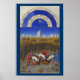 The Book of Hours was a prayer book that became popular in France around the year 1400 and was made for the French prince Jean de Berry. From Wikipedia: Each month of the calendar is allotted two pages, one for the calendar and another for the miniature and a semicircular arch. The calendar provides the reader with days in the solar and lunar months, as well as great feasts and saints for each day. January is the largest miniature in the calendar and includes the Duke de Berry at a New Year’s Day feast. Several of the miniatures depict the Duke, fields or castles he owned, and places he visited. This portrays the personal function of the book of hours, as it is customised to suit the patron. Add a frame, print it on canvas, or purchase the matching invitations.