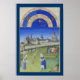 The Book of Hours was a prayer book that became popular in France around the year 1400 and was made for the French prince Jean de Berry. From Wikipedia: Each month of the calendar is allotted two pages, one for the calendar and another for the miniature and a semicircular arch. The calendar provides the reader with days in the solar and lunar months, as well as great feasts and saints for each day. January is the largest miniature in the calendar and includes the Duke de Berry at a New Year’s Day feast. Several of the miniatures depict the Duke, fields or castles he owned, and places he visited. This portrays the personal function of the book of hours, as it is customised to suit the patron. Add a frame, print it on canvas, or purchase the matching invitations.