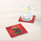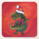 TRex Dino in Santa Hat on Red Square Paper Coaster