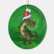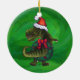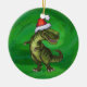 TRex in Santa Hat on Green Ceramic Tree Decoration