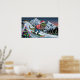 TRex snowboard on mountain psychedelic colours Poster