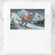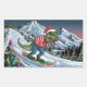 TRex snowboard on mountain psychedelic colours Rectangular Sticker