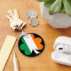 Irish tri-colour shamrock against black background.