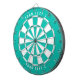 Custom dartboard designed with a tri-colour teal and white colour scheme. Large white text curved on the top and bottom are fully customisable for a personalised gift.