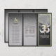 Elegant Yoga and Massage Therapy Studio Tri-Fold Brochures Template - Elegant Black White Grey & Gold Watercolor Meditation Posture with OM Symbol on Black Grunge Background.