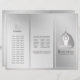 Yoga Studio Meditation Instructor / Life Coach / Healer / Reiki Master / Massage Therapy Tri-Fold Brochures Template - Modern Elegant Black White and Silver Grey Bodhi Leaf and Yogi in Easy Seat pose / YOGA Easy Pose / Sukhasana Pose on Silver Floral Background.