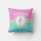 Beautifully personalised girl's figure skating square throw pillow with a cool tri-coloured pastel design. There is a soft pink, lovely green, and incredible aqua in this design. It also has a lovely figure skater in the middle! Use the custom text field to add a name before you order. Or if you prefer, leave the text field blank for no name.