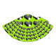 Pictured in a repeated pattern on lemon green are three lawn bowls with a jack