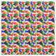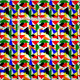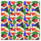 This fabric has a Bauhaus design of a collage of triangles in red, yellow, orange, blue, and green.