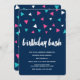 Triangle confetti at the top in white, aqua, and pink. Reads "birthday bash" in a modern, handwritten font in white. Easy to customise the text underneath! The background colour (shown with navy blue) can also be customised to any colour you'd like. Perfect for a fun, modern, birthday party! Features the same triangle confetti design on the back.