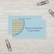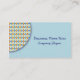 Decorative business cards that feature a half circle triangle pattern design in the left corner with a light blue background. Customise the business cards with your company name and slogan on the front. Add the employees information on the back. Make sure to edit all text fields on these customised business cards.