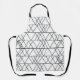 This apron has a mid-century modern design of white triangles running horizontally made with black lines.