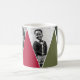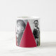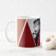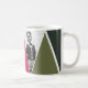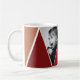 Mug with triangles in red and green and place for two photos to personalise it and make it a special gift.