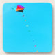 A photograph of a colourful kite flying high in the summer blue sky. The kite has many triangle shaped fabric pieces to create the wind catcher and then the line to the handle had little triangles going down the string. Photograph Copyright ©Kimberly J Tilley.