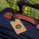 I was happy with the acrylic tag but it came with a thin leather strap to attach the tag to luggage (like a cat collar). I replaced the strap with a metal ring off of a key ring as the leather strap would come undone or break easily as luggage is sometimes handled without much care by airlines. Printing is great. Colours and positioning of the design I put on the tag were perfect. Very pleased.