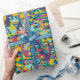 Charming and original design. The triangles in blue, yellow and burgundy combine to create a unique mosaic. Bright geometric pattern for any occasion.