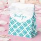 Bright tribal angular key style blue green teal on white thank you gift boxes. Ideal for wedding, celebrations and birthday favours. Designed by Sarah Trett.