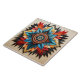 This ceramic tile is a beautiful piece of art, featuring a Tribal Aztec pattern that's full of geometric shapes and abstract designs. It's colourful, making it a bright and cheerful addition to any room in your home. The design draws from a rich mix of cultural influences, including Tribal, Native American, Mexican, Indian, Kilim, and Apache traditions. This blend creates a unique and ethnic look that adds character and warmth.