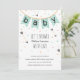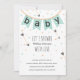 Mint, gold and pink hearts, raindrops and arrows are paired with a "baby" bunting flag in these sweet mint tribal baby shower invitations. Perfect invitations for gender neutral or boy baby showers. Also works great for a woodland themed baby shower.