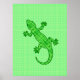 Gecko patterned with a tribal batik textile design - shades of lime and emerald green, outlined in dark emerald with a light lime and chartreuse shippo pattern background poster