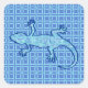Gecko patterned with a tribal batik textile design - light chambray blue with shades of denim blue and white, outlined in indigo