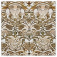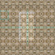 Fabric in a batik pattern of repeating shapes, with a tribal inspired theme, in shades of coffee brown and tan, on a light beige / cream background