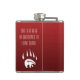 The flask itself is fine. It’s a cheap flask, obviously bought in bulk, however am prepared to overlook that. Given that it is a personalized item, I would have liked to have seen gift boxing instead of the generic packaging. Terrible printing, and/or quality. It’s a cheap, tacky vinyl. It is not cut straight and is also applied in a way that it is overhanging the bottom, causing the glue to catch on items and it will eventually roll and tear, damaging the wrap.