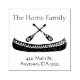 Tribal decorated canoe with paddles graphic splits customisable text. Top text box can be used for family or business name and bottom box for address or other contact details