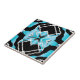 Modern vibrant decorative ceramic tile design featuring a seamless pattern made of abstract shapes in turquoise, black and white.