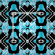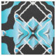 Modern vibrant fabric design featuring a seamless pattern made of abstract shapes in turquoise, black and white.