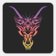 Black sticker with a tribal tattoo style dragon in purple, red and orange sunset colours.