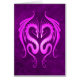 Two light violet tribal dragons face each other in this aggressive symmetrical design. The subtle highlights on the surface of the winged serpents give the design a striking 3D look. A shadow falls just behind the twin dragons making them appear to float just above the deep purple background. Large wings stretch out on either side which beautifully frames the design. This stunning pattern makes a stylish card design.
