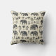 Rustic tribal elephant pattern throw pillow featuring bold black elephant silhouettes, geometric motifs, and folk-inspired details on a neutral textured background. A stylish and timeless design ideal for safari lovers, boho décor fans, nursery themes, and anyone who loves ethnic-inspired art.