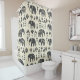 Rustic tribal elephant pattern shower curtain featuring bold black elephant silhouettes, geometric motifs, and folk-inspired details on a neutral textured background. A stylish and timeless design ideal for safari lovers, boho décor fans, nursery themes, and anyone who loves ethnic-inspired art.