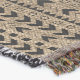 Black and white tribal elephant patterned with geometric designs over a faux burlap print background with geometric patterned sides in black.