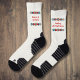 A colourful red frame for your name (in matching red colour) is located on the outside of the calf of white these high-performance athletic socks. It works well with one or two lines.