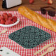 Modern, bold tribal diamond gems pattern in black and teal