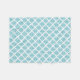 A Moorish key tribal damask style repeat square patterned blanket in aqua blue and white hues. Pattern designed by Sarah Trett.