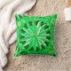 Throw pillow in a modern tribal / ethnic print of nested mandala wheels and triangles, with a tropical feel - shades of lime green and dark emerald green, accented with cream
